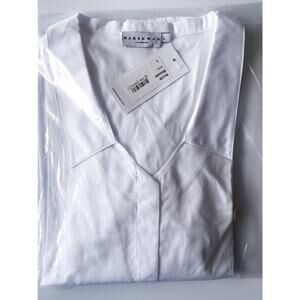 100% premium cotton button down with 3/4 sleeves, relaxed fit, v-neck.