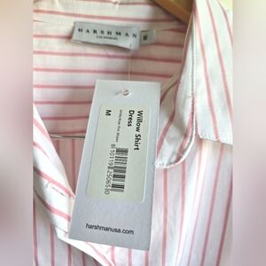 NWT! Harshman, Willow Shirt Dress, White/Rose Pink Stripes, Medium -MSRP $244