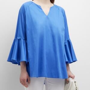 NWT Harshnan Zenaida Blue Ruffled Blouse with 3/4 Sleeves, L