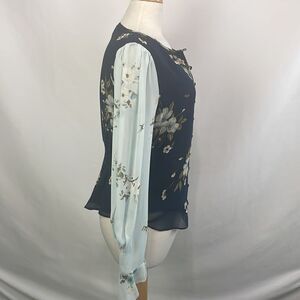 NWT Hartly Navy Mint Floral Peasant Top