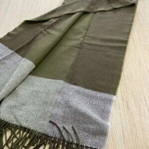 NWT shawl or scarf in beautiful color block greens and grey. The fringe adds a nice touch. Super soft and cozy for cool fall days and nights. Great for the movie theater. High quality, one size, and timeless/ageless style.