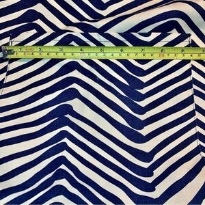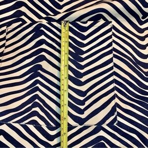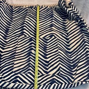 100% Cotton exterior with 100% Nylon lining. Navy Blue and White / Cream Striped Geometric Pattern.