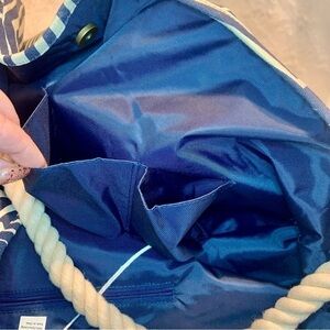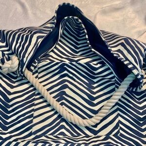 NWT Hat Attack Huge Tote Bag Buji Baja line Navy Blue White Striped Pattern New
