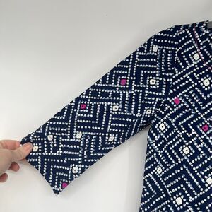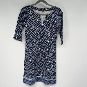 NWT Lucy Hatley Mini Dress Womens XS Blue Popped Ikat 3/4 Sleeve Split Neck