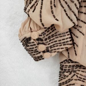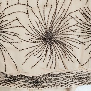 Features beautiful allover brown beaded hand embellishments in a sunburst or firework pattern