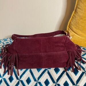 NWT! Haute Hippie Genuine Leather Red Wine Color Suede Slouchy Fringe Bucket Bag