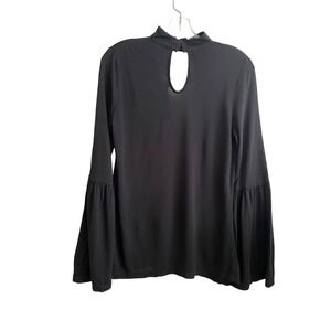 NWT Haute Hippie Key Hole Bell Sleeve Top Blouse Size XS Black Mock Neck Boho