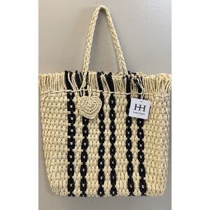 NWT Haute Hippie tan with black stripes raffia straw tote bag