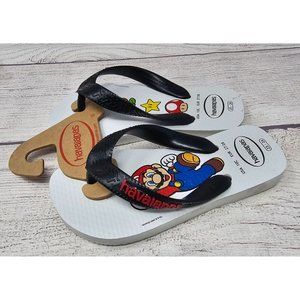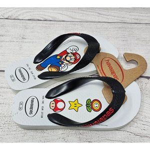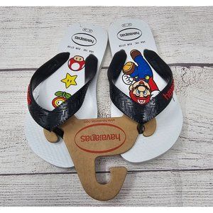 NWT Havaianas Boys Mario Bros Sandal White/Black Flip Flop Size 10C