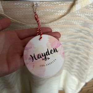 NWT Hayden Los Angeles Knit Oversized Hoodie Sweater Yellow & White Size Small