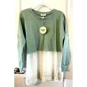 NWT Hayden Los Angeles Layered Cotton/Lace Sage Green Cream Size M Vintage Look cottagecore Y2K feminine cute comfort casual dressy business tshirt jersey oversized drop shoulder sheer lace