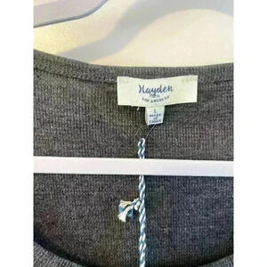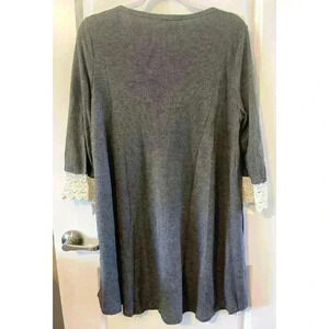 NWT Hayden Los Angeles Long Sleeve Dress Knit Crochet Size L Granite Heather Gray Baby doll shift dress comfort simple cottagecore vintage look casual