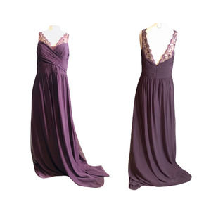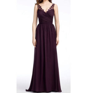 NWT Hayley Paige Women's Long Bridesmaid Gown Chiffon Dress Size 12 Purple