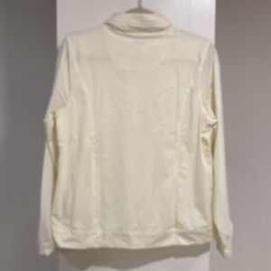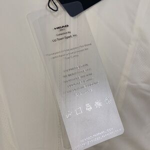 NWT attacked Head Golf Chloe jacket. Jacket has 2 front zip closed pockets and elastic cuffs Cream color. Jacket offers UV protection memory stretch odor resistance and moisture wicking. Jacket has small stain on back, see picture and is reflected in price.