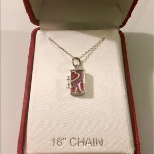 • A beautiful purple charm with red hearts on a dainty sterling silver chain