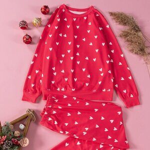 NWT SHIPS FROM USA SAME DAY Mon-Sat BEFORE 4PM EXCEPT HOLIDAYS AND SUNDAYS. Get ready to relax in style with our Heart Round Neck Top and Pants Pajama Set With Pockets!!! Crafted from ultra-soft fabric, this set offers the perfect combination of comfort and charm. The cute heart design on the round-neck top adds a playful touch, while the cozy pants provide a relaxed fit for a peaceful night’s sleep or lounging around the house. Whether you're winding down after a long day or enjoying a lazy weekend, this pajama set is the ideal choice for both comfort and style. Available in a range of sizes, it's the perfect gift for yourself or a loved one. Very loose fitting for comfort!