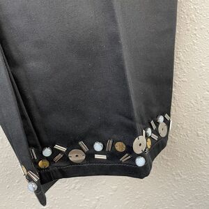 Super fun pair of black cropped pants by Hearts of Palm featuring a beaded and sequined design at the hem. They measure 16 inches at the waist with a 24 inch inseam.