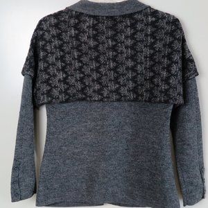 NWT Heather B Charcoal Gray Wool Blend Jacket Size S MSRP $158. Bust is 34", waist is 32" and length is 22.5". 95% wool and 5% lurex. Upper rear is lined with 100% polyester. Added shoulder panel extends to upper back. Black and gray add a unique design to a classic jacket. Four button front. Two front pockets. Long sleeves have three button cuffs. Perfect for dress, career or casual wear. New with tags. MSRP $158