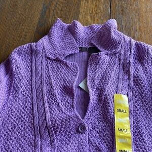 NWT Heather B lilac button-down sweater V-neck Long sleeve textured knit size S