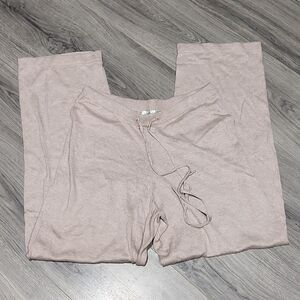 NWT Heather Taupe Pull On Elastic Tie Pant, absolutely flawless and great casual cozy lounge pant. Wide Leg and neutral color. No pockets, waist unstretched is 15" and 30" long.