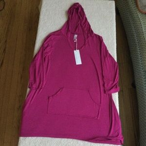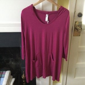 NWT Heathmoor Hooded Tunic Top Fuchsia Pocket Pouch - Sz Large