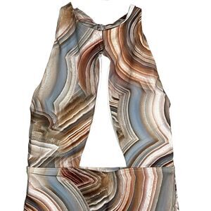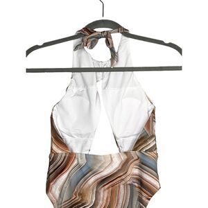 Helen Owen Byblos Cutout Halter Cheeky High Cut One Piece Swim Tie Top Removable Cups Large Sandstone Blues Browns Tans Creams Beige