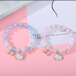 NWT Hello Kitty Cartoon Charms Bracelet Kawaii Pendant New 18cm Blue Stretchy