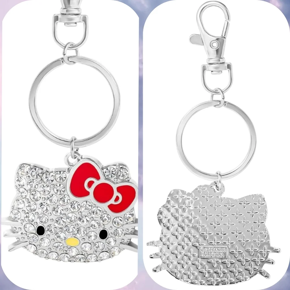 Sparkling Hello Kitty keychain with red bow and rhinestones. Perfect for adding charm to your keys.