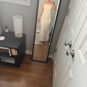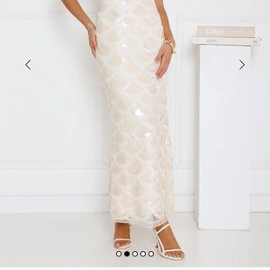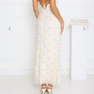 NWT Hello Molly After Party Edit Halter Sequin Maxi Dress Cream - Small