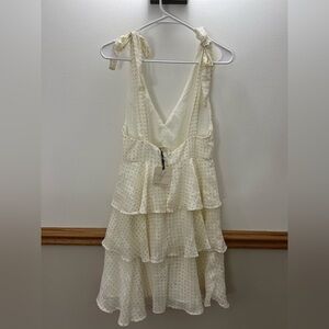 New with tags Dress Forum Polka Dot Ruffle Ivory Dress Size Medium , very soft and lightweight. Dress forum brand is also sold at hello molly & revolve. Perfect dress for spring break, wedding guest, wedding shower and summer! See measurement dimensions in pictures.