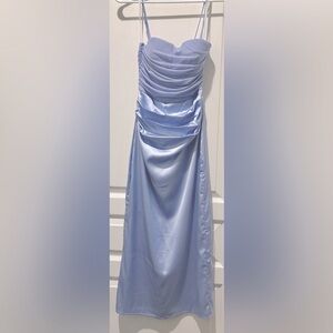 NWT Hello Molly Sleeveless Fortune Seeker Midi Dress w Ruched Mesh Icy Blue