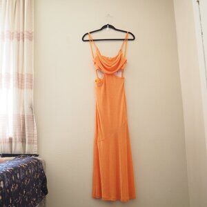 NWT Hello Molly Tangerine Orange Starry Way Spaghetti Strap Cut-Out Maxi Dress