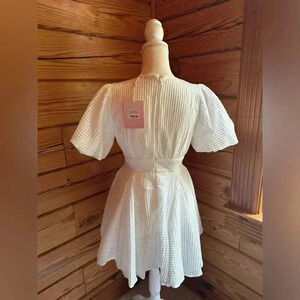 NWT Hello Molly White Mini Dress puff sleeves and textured fabric size small