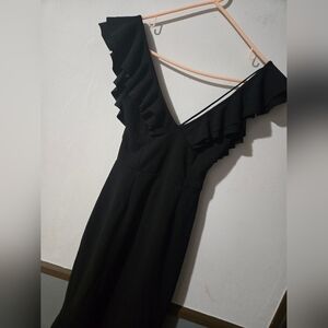 NWT Hello Molly Women's Small Size 4 Hi-Low Ruffle Hem Black Maxi Dress