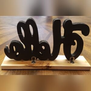 Add a warm, welcoming touch to your space with this stylish "Hello" tabletop sign. Featuring bold black lettering with a white accent wire and mounted on a natural wood base, this modern rustic piece is perfect for entryways, shelves, or office desks. Lightweight and freestanding.