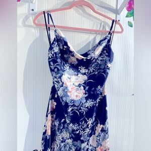 This stunning sundress by Hello Molly features a striking blue and white floral pattern, perfect for a wedding guest or cocktail event. The sleeveless design with spaghetti straps and a backless detail adds a touch of elegance, while the flowing A-line silhouette ensures graceful movement.