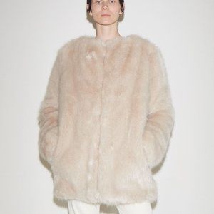 NWT Helmut Lang Faux Fur Oversize Coat Beige M