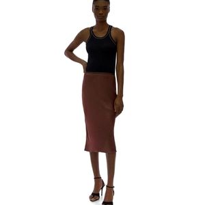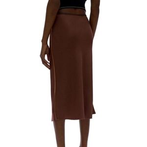 NWT Helmut Lang Satin Midi Slip Skirt Brown