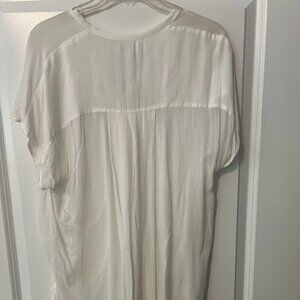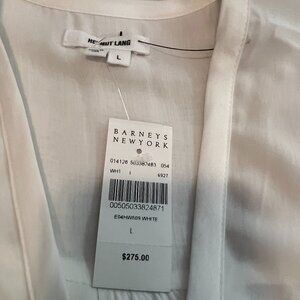 NWT Helmut Lang faux Wrap white sleeveless blouse, size L. The material is very sheer and lightweight. Can be dressed up or down. From a smokefree home.