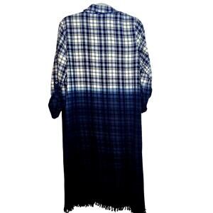 NWT Hem & Thread Duster Shacket Size M Plaid Blue Ombre 100% Cotton Open Front