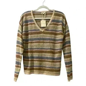 NWT Hem & Thread Womens Multicolor Striped Long Sleeve V-Neck Sweater Size Small