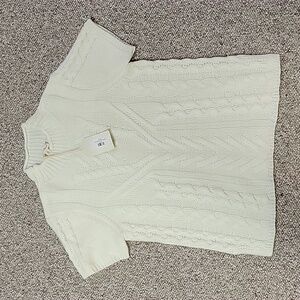 NWT Hem & Thread short sleeve cream cable knit mock turtleneck sweater sz small