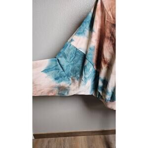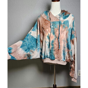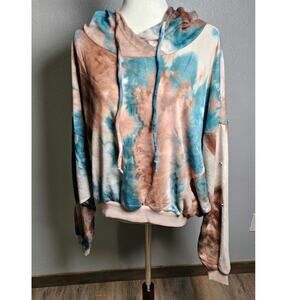NWT Hem and Thread Womens Tie Die Oversized Hoodie Teal and Brown Large