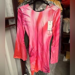 NWT Hemant & Nandita Abira Mini Floral Satin Dress Pink Womens Size Small