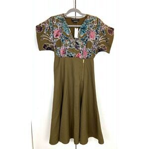 NWT Hemant & Nandita Swing Dress women's 2 textured floral midi kaftan