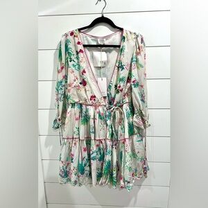 NWT Hemant & Nandita white floral print Zaina mini dress