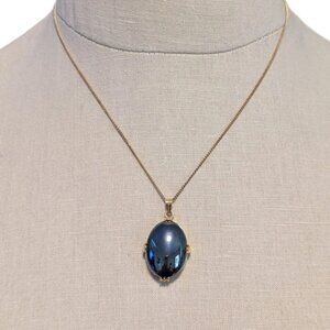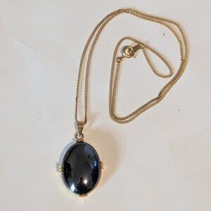 Hematite Gold Tone Pendant Necklace Oval Faceted Gemstone