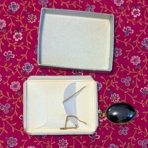 NWT Hematite Gold Tone Pendant Necklace Oval Faceted Gemstone New in Box