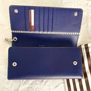 Flaws Noticed: There is a small dent on the front of the wallet, and there are very small blue dots on the top of the wallet. Please see all photos.
