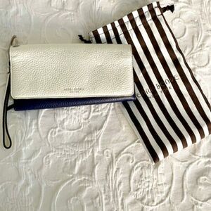 NWT Henri Bendel White Blue Pebbled Wallet with Sunglass Case Wristlet Clutch